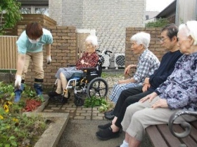 ご自宅に近い、家庭的な雰囲気の中で生活します。食事の支度や掃除、洗濯などをスタッフと共に行い、お一人おひとりのペースを尊重しながら、穏やかな毎日を過ごします。専用の菜園で野菜作りや花のお手入れを楽しむこともできます。