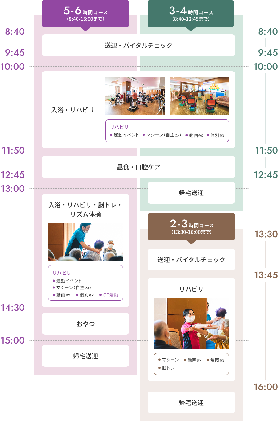 ご自宅で自立した自分らしい生活を続けられるよう、日帰りでリハビリテーションを提供するサービスです。「いつまでも自分らしい生活を」を合言葉に、お一人おひとりの状態に合わせた専門的なリハビリで、心身機能の維持・向上を支援。ご自宅での暮らしを、チーム一丸となってサポートします。