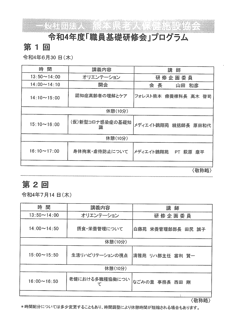 2022.07.25 「令和4年度熊本県老人保健施設協会」のオンライン研修会で講師を務めました 介護関係者お知らせ 2022年7月14日(木)、介護施設向けで「令和4年度熊本県老人保健施設協会」の オンライン研修会(第2回目)が開催されました。 介護老人保健施設「白藤苑」の田尻管理栄養士が講義内容「摂食・栄養管理について」講師を務めました。 ページ送り 一覧へ戻る 前の記事へ 次の記事へ