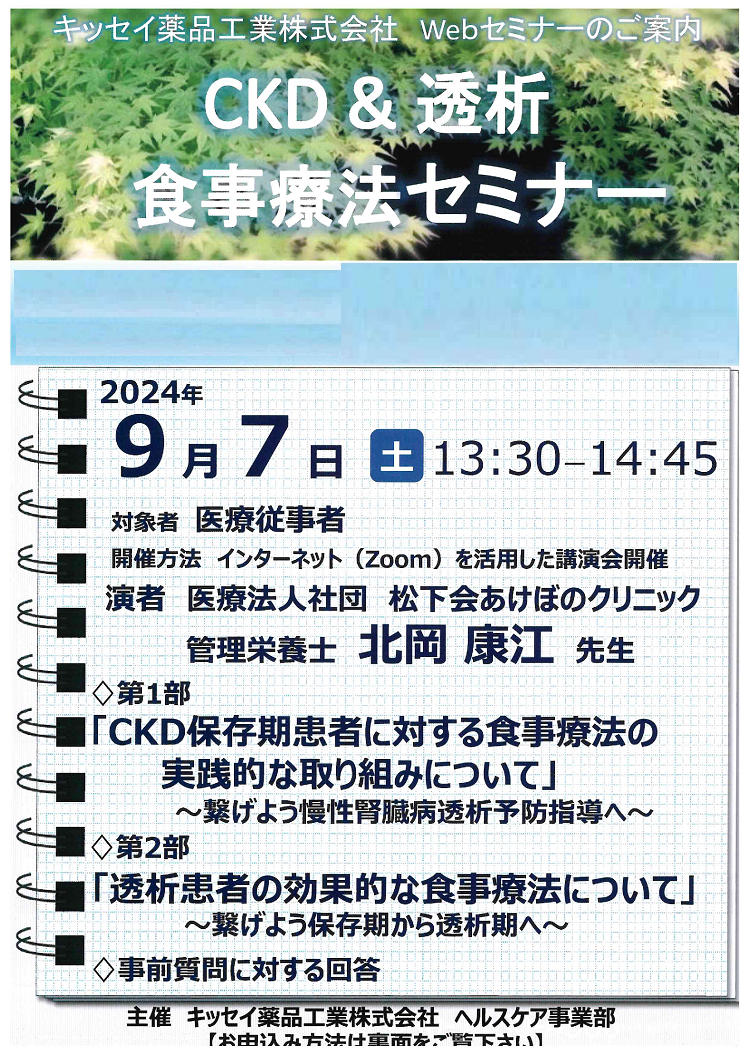「CKD&透析 食事療法セミナー」であけぼのクリニックの北岡主任管理栄養士が