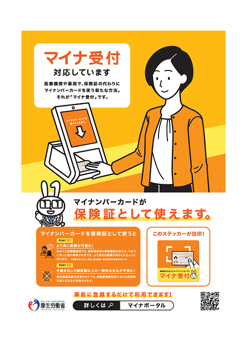 マイナンバーカードの健康保険証利用|マイナポータル (myna.go.jp)マイナ受付ポスター